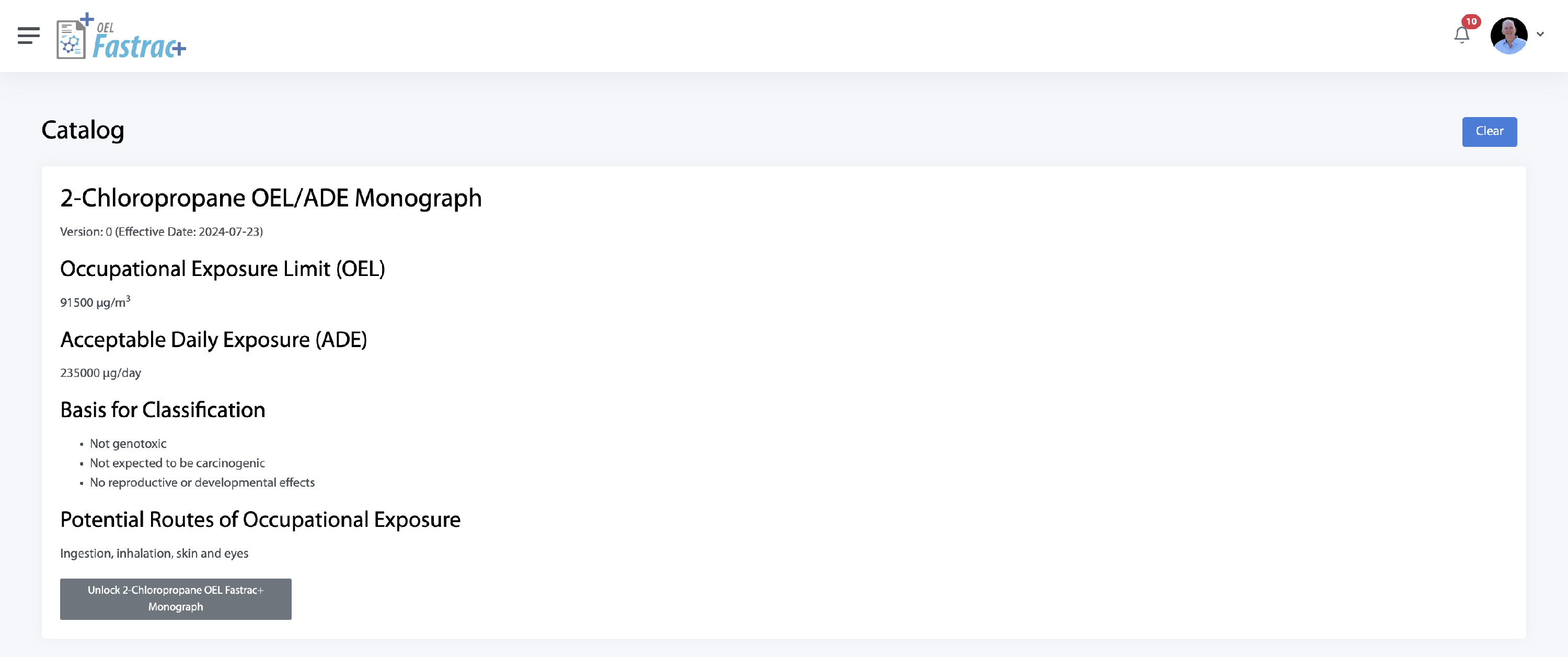 For the entire catalog of reports, previews of OEL/ADE values, and basis of classifications are available. All preview data is included at no additional cost. Below is a screenshot of an example of what the preview data looks like.